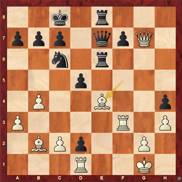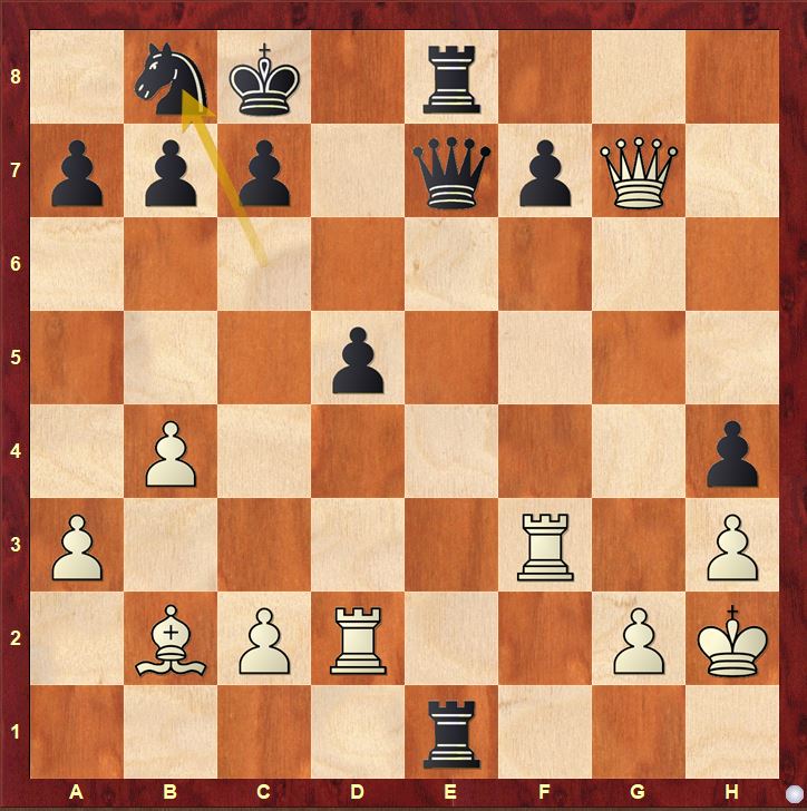 A final mistake which allows black to unpin the piece and seal the game with ease.