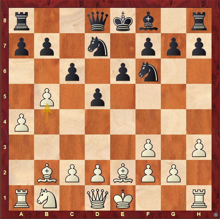 Black is solid but white tries to weaken the queen side by trying to create a pawn break.