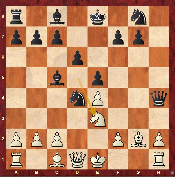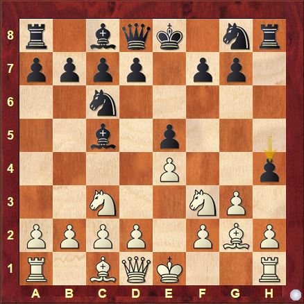 Nf6 11.c3 Bg4 12.Nxg4 Nxg4 13.Rf1 Ne6